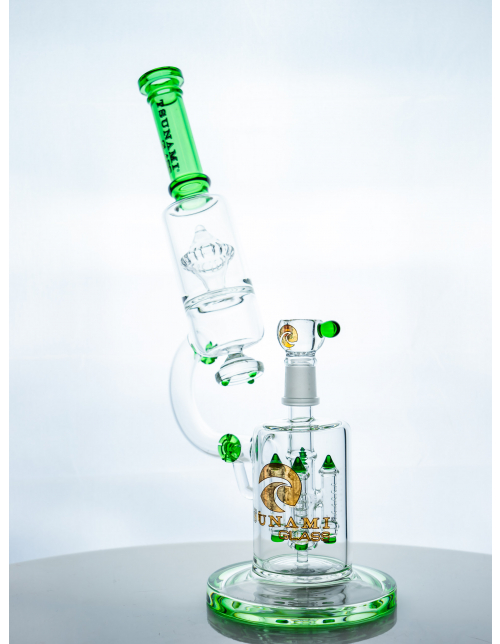 Get up close and personal with this conveniently sized, uniquely designed Tsunami Microscope water pipe. Made with the most premium glass, the Microscope pipe has a Quadruple Rocket Perc for maximum filtration. Rip clean, smooth hits through a pipe like you’ve never seen before. The Tsunami Microscope pipe is lightweight, equipped with a splash guard and easy to use with a curved mouthpiece, too.