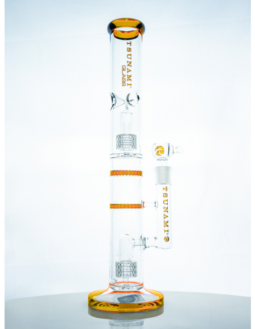 The Dual Domed Matrix Dual Honeycomb water pipe is a straight shooter in shape, but complex in filtering features. With two drum percolators and two honeycomb discs, you’re treated to smooth and tasty hits that have been quadruply filtered. Puffs of smoke cool through the discs and percolators, as they rise to the top. Multiple slits along the way infuse the clouds with bubbling water, so you’re left with a mellow inhale no matter how big your rip. Equipped with ice notches that’ll freeze even further, for a crisp and cool buzz.