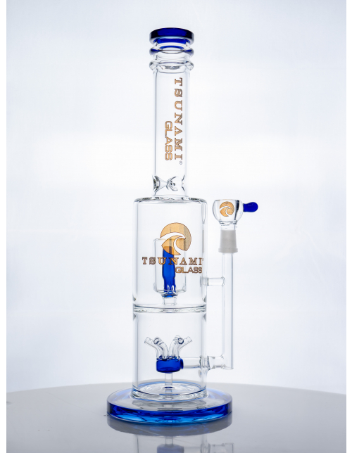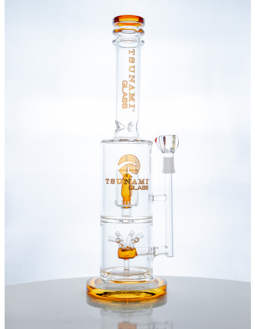 A straight-up shape, delivers straight-forward percolation perks from the Tsunami Cube Perc water pipe. The premium glass piece is equipped with a thick stable round foot for stability, a rimmed mouthpiece for comfortability and maria’s, or pushed glass accents for decor and grip. The Tsunami Cube Perc infuses each puff with water, through a sprinkler percolator and a slitted cube perc, extra filtering your hits. Cool each rip down even more, with convenient notches for ice cubes, too.