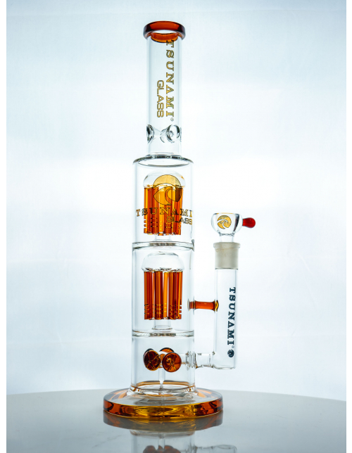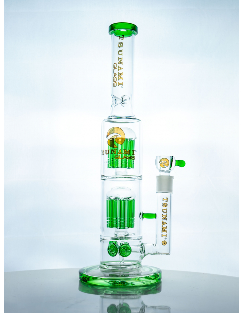 There’s more to the Button Double 8 Arms Tree Perc water pipe than meets the eye. While simple in design, it’s what’s inside that matters most. And inside the sleek and sturdy premium glass device, is three chambers with three percolators for smooth and clean hits. With ice notches too, what more could you ask for? Smoke swirls through a spore percolator equipped with slits, and two 8-arm tree percolators, diffusing the rip along the way. What you’ll inhale is a crisp, fresh and premium filtered buzz, from an easy to use, yet premium pipe.